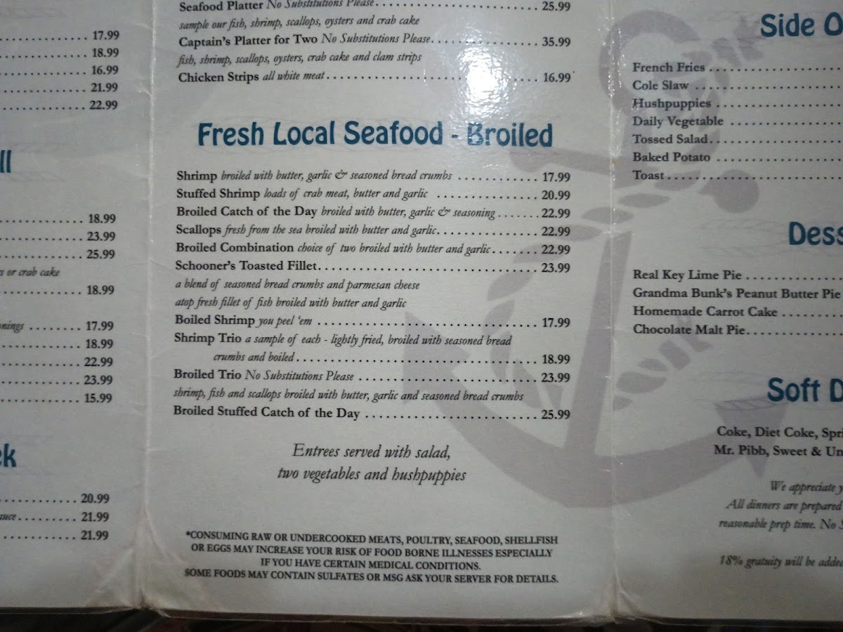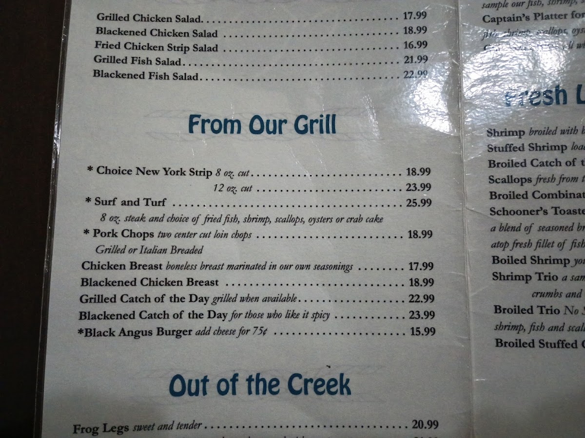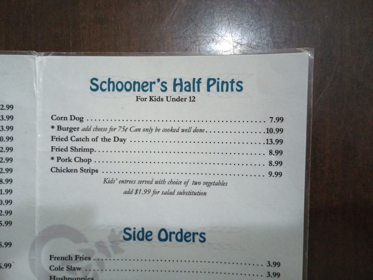 Schooner's Seafood House Menu