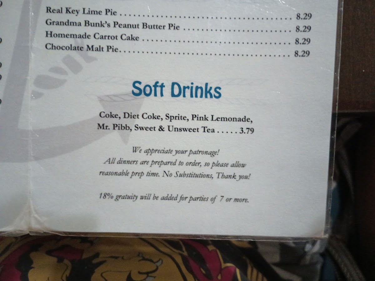 All of these selections complement the welcoming, family-style atmosphere of the restaurant. Meals here invite relaxed conversation and a shared appreciation for fresh local seafood. The menu is rounded out by classic dessert choices like Key Lime Pie and comforting favorites such as peanut butter and carrot cakes, completing the experience with a touch of homey sweetness.